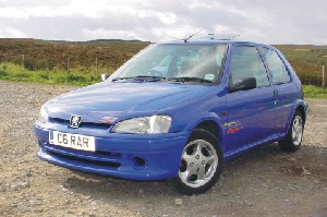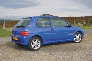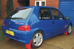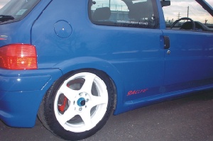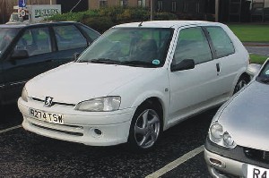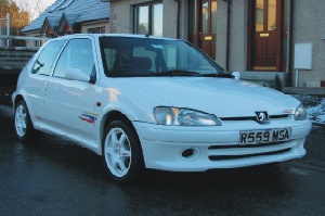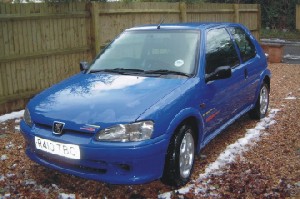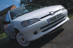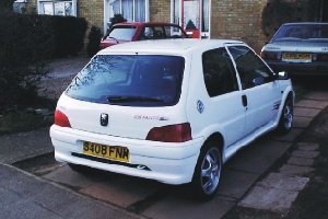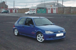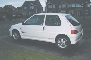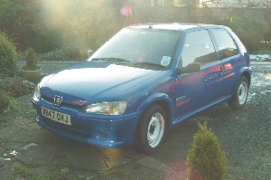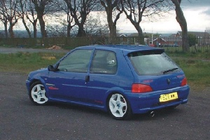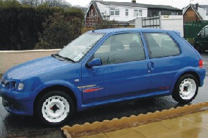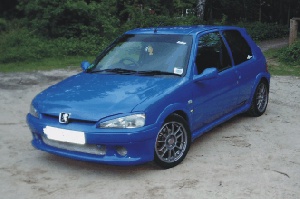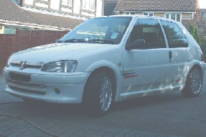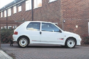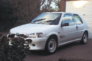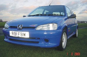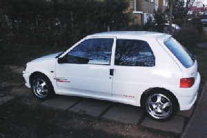 Owner: Alan Woodison Location: Ayrshire, Scotland Forum Name: Woody Import Number: 358 (Apr 98) Power Steering: No Engine: K&N induction kit Lumenition silicone blue spark leads Exhaust: Powerflow de-cat exhaust with 4-1 manifold Brakes: Uprated discs with Mintex C-Tech M1144 pads Suspension: Sparco upper strut brace Wheels & Tyres: 206 XSi 15" alloys with 10mm spacers and Yokohama A539 tyres Other: Clear side repeaters Sparco bucket seats with Safety Devices harnesses Planned Modifications: Suspension upgrade Bigger front discs Email: alan_woodison@hotmail.com