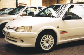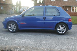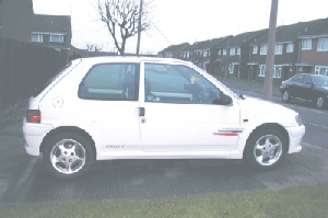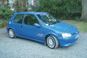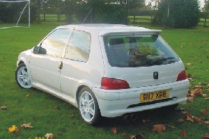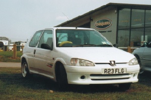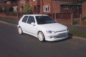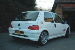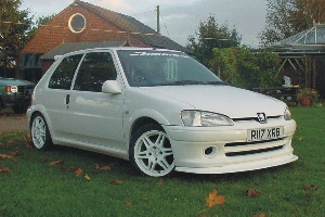 Owner: John Colling Location: Cheshire Forum Name: John C Import Number: 275 (Mar 98) Power Steering: No Engine: Kent cam Superchip Induction kit Exhaust: Supersprint full system Brakes: 306 GTi-6 front calipers Suspension: Koni dampers Ecosse springs (-60mm) Wheels & Tyres: 15" white Speedline Chrono's with Toyo Proxes TS-1 tyres Other: Front Splitter DTM style wing mirrors Saxo VTS rear spoiler Full leather retrim Planned Modifications: None