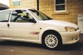 Owner: Matt Miller (PGAC SW Leader) Location: Somerset Forum Name: Rallye_Matt Import Number: 26 (Nov 97) Power Steering: No Engine: Standard Exhaust: Standard Brakes: Standard Suspension: Standard Wheels & Tyres: 15" Team Dynamics in white with Yokohama A539 195/45/R15 Other: Clear side repeaters Planned Modifications: Peugeot Sport Exhaust Email: rallye_matt@yahoo.co.uk