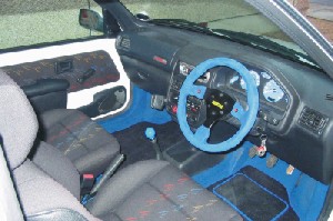 Owner: Alan Gunner Location: Hertfordshire Forum Name: Alan G Import Number: 516 (Sept 98) Power Steering: Yes Engine: Lumenition SB spark leads Exhaust: Standard Brakes: Standard Suspension: Standard Wheels & Tyres: TSW Razor 15" alloys wheels with 195/45/15 Falken 512 tyres Other: Blue gear knob Blue painted brake calipers Planned Modifications: Retrim seats in white leather Dimma bodykit