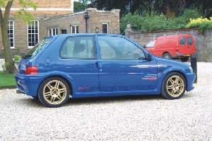 Owner: Marc Butler Location: Hertfordshire Forum Name: butler Import Number: 186 (Feb 98) Power Steering: Yes Engine: LAD Motorsport 130bhp engine conversion K&N panel filter Exhaust: Standard Brakes: Front EBC Turbo grooved discs and Greenstuff pads. Rear standard discs with EBC black pads Suspension: Lowered -40mm all round Uprated springs and dampers OMP strut brace Wheels & Tyres: 15" Speedline Chrono's in gold with Eagle F1 GS2 tyres Other: Corbeau race seats and Willans 4 point harnesses Snap off steering wheel Colour coded wing mirrors and door handles Planned Modifications: Peugeot Sport exhaust Powerflex poly bushes Bigger brakes Email: marc_a_butler@hotmail.com